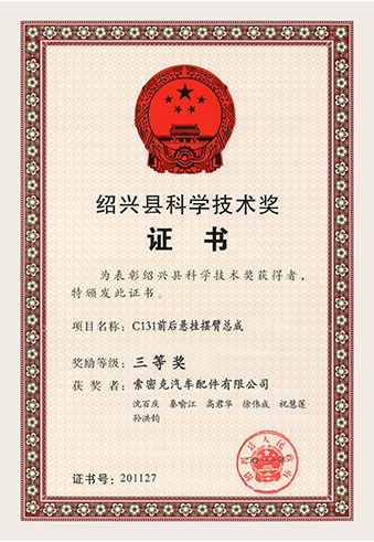 公司已先后通過IATF16949質量管理體系認證、ISO/14001環(huán)境管理體系認證和OHSAS18001職業(yè)健康安全管理體系認證。是“國家高新技術企業(yè)”“行業(yè)龍頭企業(yè)”和“全國百家優(yōu)秀汽車零部件供應商”。